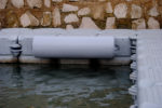 La baranda de protección con tubos de polietileno sirve de seguridad para las personas que transitan sobre el muelle. La baranda se fija a los dos extremos a través de los pernos exteriores.